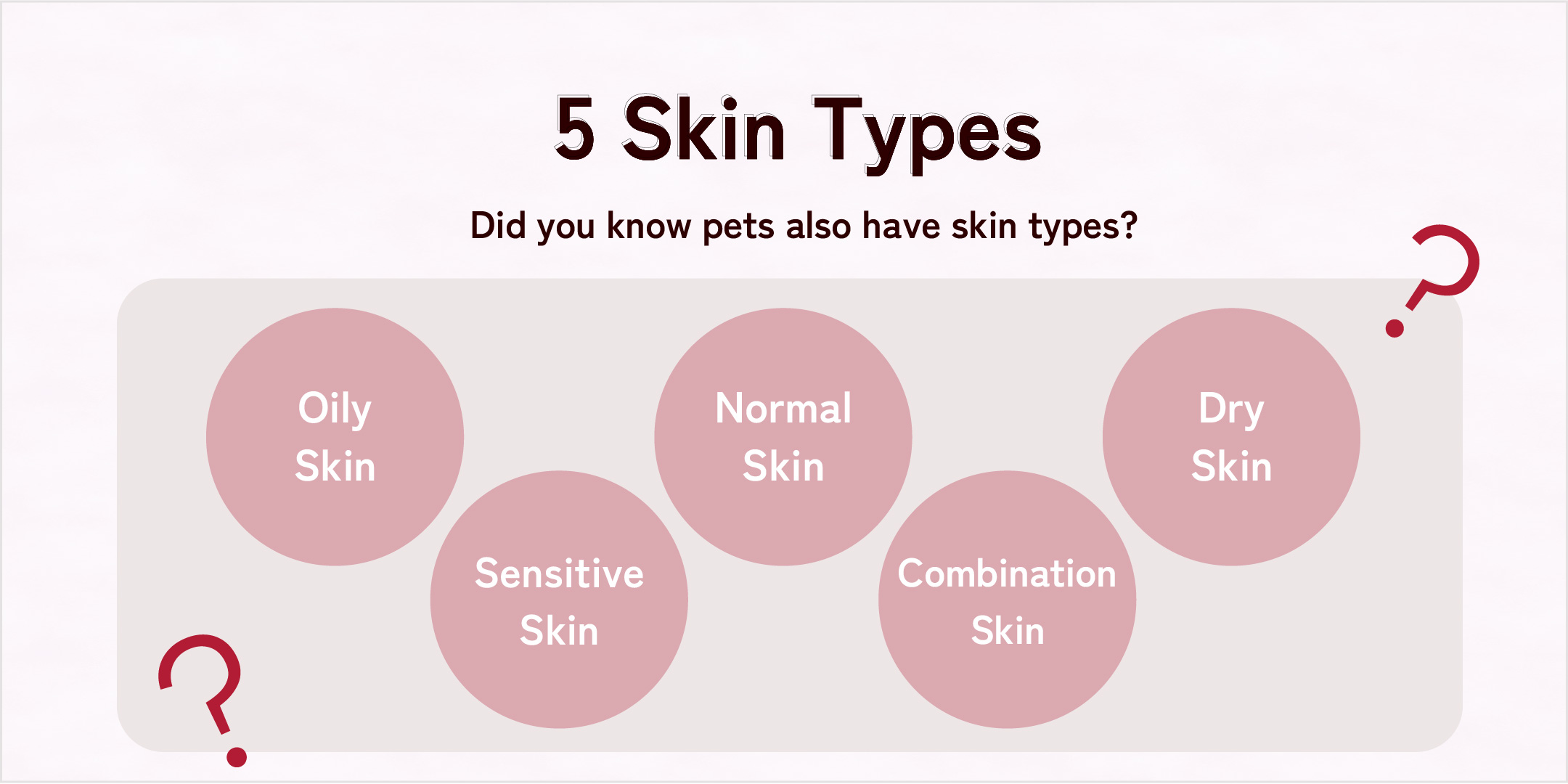 Just like us, pets have different skin types—Normal, Oily, Dry, Combination, and Sensitive.