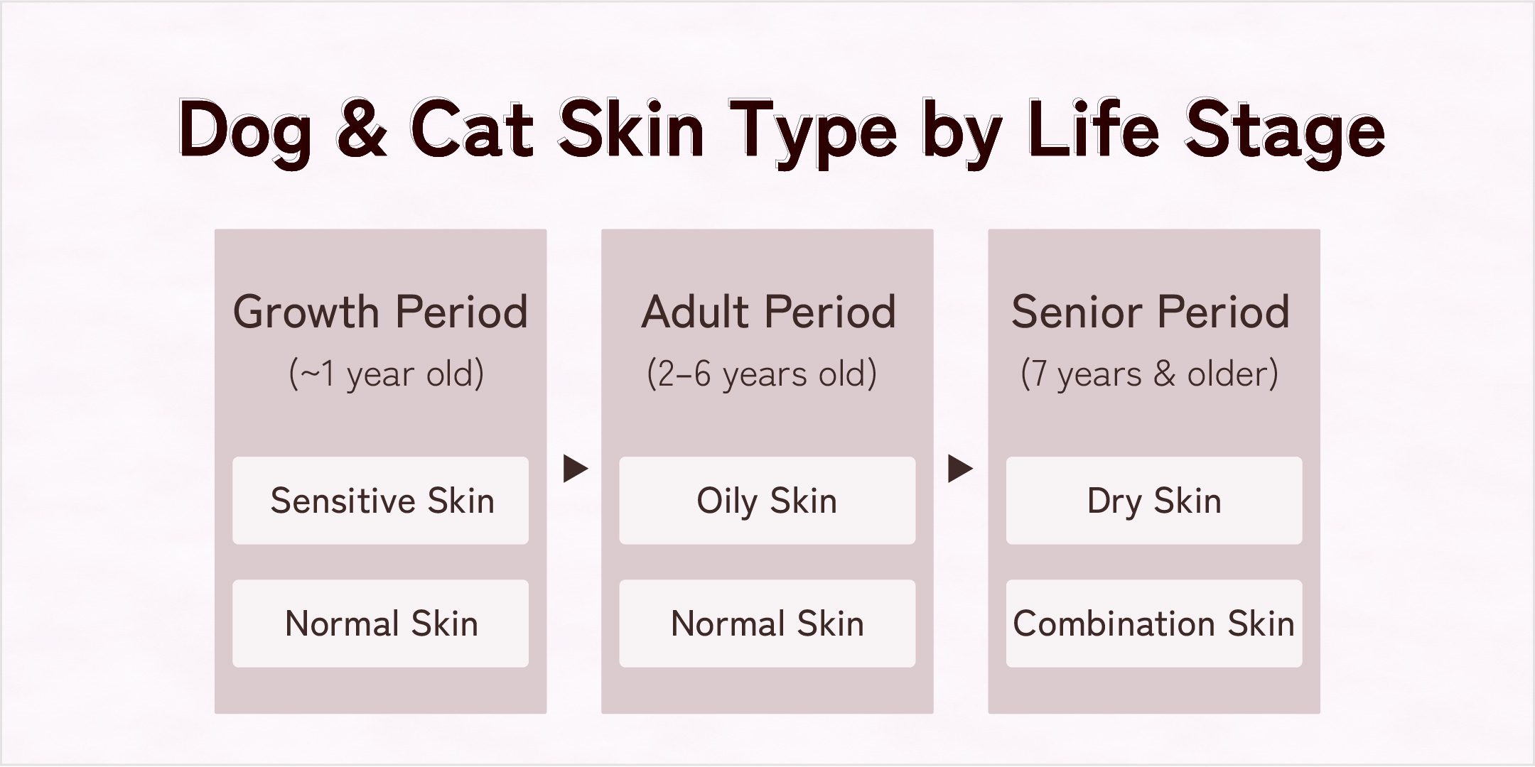 Here’s a quick look at how your pet’s skin type tends to change with age:
